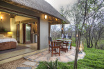 Tambuti Lodge consists of five luxury chalets all fitted with contemporary elegance and quality furnishings. Surrounded by striking Tambuti Trees, all suites offer spectacular bush views and are equipped with air-conditioning, an en-suite bathroom, double vanities, bath, indoor and outdoorshowers, completed by a private deck.